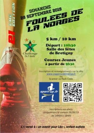 Ce dimanche matin se déroulait la 21ième édition des Foulées de la Norges organisées par l’Association des Joggers du Val de Norges (AJVN). La manifestation comporte 5 épreuves distinctes ouvertes à tous. Cette année 582 personnes ont participé à l'évènement, 8éme course du Challenge de l'Etoile 2019. Jodi Lynn et Marie-Laure Thoriny ont pris le départ. Jodi Lynn boucle les 2 km en 07'55, 1ère fille au scratch et 1ére minime fille. Marie-Laure termine le 10km en 53'26.